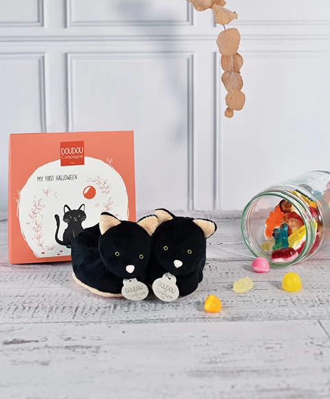 BOUH ! Et si bébé participait aussi à la fête d’Halloween ? Avec ses adorables petits chaussons bébé Chat noir bien chauds, confortables et très amusants, il sera tellement irrésistible qu’on aura envie de le croquer ! Présenté dans une très joli boîte chic et drôle, c’est un cadeau idéal dès la naissance;