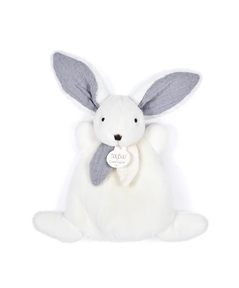 Ce petit Doudou lapin HAPPY bleu « Happy Glossy » est extrêmement doux et tendre. Adorable avec son pompon blanc soyeux ainsi que ses touches de lange blanc et ciel, il est blotti dans une superbe boîte cadeau aux graphismes évoquant à la fois la modernité et le luxe, tel un écrin magique. Ce doudou mini format est à adopter de toute urgence !