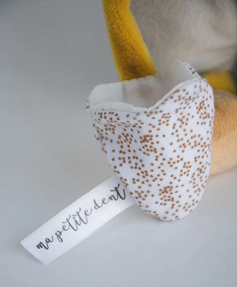La Petite Souris va passer ! Un de ces instants magiques de l’enfance qui restera inoubliable grâce à cette peluche Souris Doudou, prête, avec son petit sac, à transformer les dents de lait en pièces de monnaie. Toute douce pour les câlins, cette jolie Souris grise est présentée dans une belle boîte cadeau.