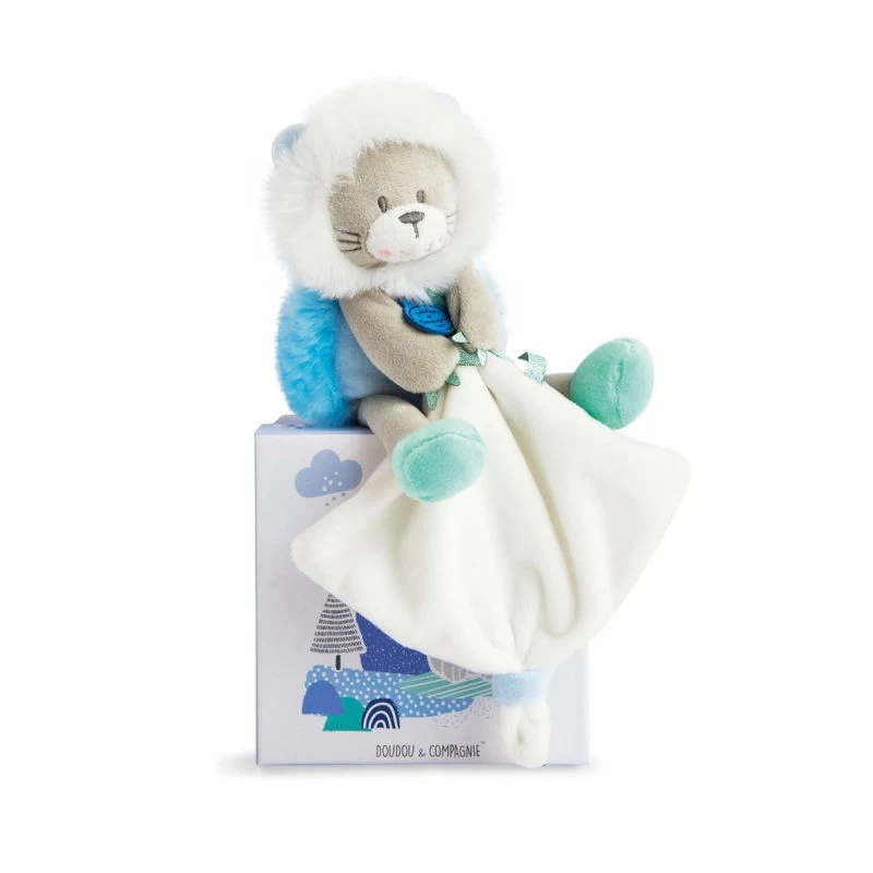 Cette jolie peluche lion bleu de la marque DOUDOU ET COMPAGNIE sera le compagnon idéal de bébé pour de tendres câlins. Une jolie peluche DOUDOU ET COMPAGNIE toute douce à offrir sans modération.