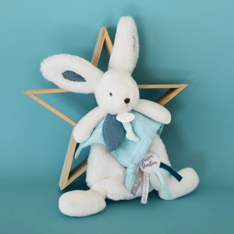 Caractéristiques :Lapin / Doudou plat / Mixte / Bleu / Avec une boîte