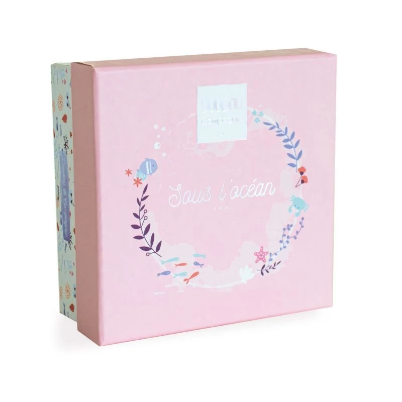 Caractéristiques :Baleine / Doudou plat / Fille / Rose / Avec une boîte