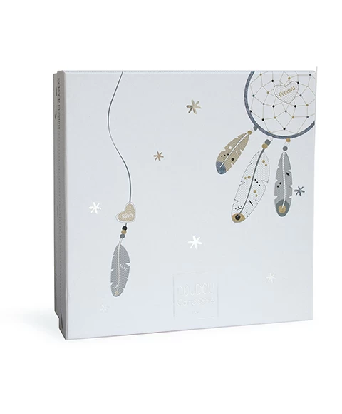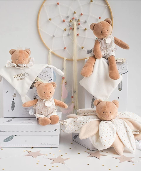 Le doudou Ours pétales Attrape-rêve accompagne bébé dès la naissance pour lui apporter douceur et réconfort. Du chic, du raffinement et de la poésie pour le plus joli des Doudous. Tout en douceur, tout en blanc et camaïeux de miel, avec ses touches de paillettes dorées, cet adorable doudou ourson veillera comme un prince sur tous les petits. Présenté dans une ravissante boîte, un très joli cadeau pour Noël ou pour célébrer une naissance.