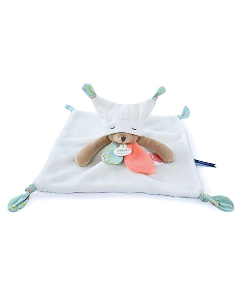 Pour appréhender sereinement le dodo, rien de tel qu’un rituel avec Doudou avant de se coucher. Ce Doudou Ours Blanc la particularité d’avoir un grand bonnet de nuit qui se replie sur ses yeux quand vient l’heure de se dire « Bonne nuit »! Aussi, il est composé d’une étiquette avec un QR code coeur qui permet de flasher une histoire à conter. Grand nombre de détails, étiquettes, nouettes sont à manipuler. Ainsi, il présente les fonctions idéales pour favoriser son endormissement.