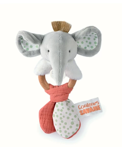 Avec ce hochet bébé COULEURS SAVANE, bébé saura facilement apprivoiser ces sublimes animaux pour jouer, rêver et s’éveiller au monde qui l’entoure ! Ce hochet éléphant apportera de grands moments de jeu ! Anneau en bois facile à manipuler par les petites mains de bébé, agrémenté de tissus en coton et coton lange et velours de coton, il participera assurément à l’éveil de tous les sens de bébé ! Présenté dans sa jolie boîte kraft ouverte, à offrir dès la naissance.