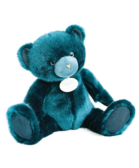 Ce magnifique peluche ours de collection est un savant mélange d’un savoir-faire traditionnel et de modernité. Créé dans une peluche de qualité, de couleur « bleu paon », elle est douce et soyeuse. Cet ours d’exception est très original avec ses touches de paillettes. Pour jouer, en décoration ou pour fêter un évènement … C’est le cadeau idéal dont on se souviendra pour toujours. Livré sans boite, pensez au sac cadeau.