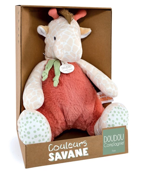 Avec cette peluche girafe de la Collection « COULEURS SAVANE », Bébé saura facilement jouer, rêver et s’éveiller au monde qui l’entoure ! Mon doudou girafe, un grand Doudou pour accomplir de grands rêves ! Ce Doudou girafe est composé de deux tissus, l’un ultra doux en velours de coton et l’autre en coton imprimé pour un toucher différent à apprécier en fonction de son humeur. Il est orné de 2 nouettes en coton lange à manipuler par les petites mains de bébé. Cette diversité de matières permettra à bébé d’apprécier des moments de calme, d’apaisement et d’endormissement.