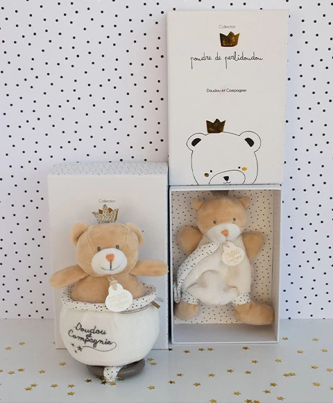 La peluche musicale Ours Petit Roi apaisera votre enfant au moment du coucher. Parce que les bonnes nuits de bébé participent à son développement, il est essentiel de prêter attention à son sommeil. Cette peluche musicale apportera aussi une touche de décoration à sa chambre ainsi qu’une ambiance relaxante. Elle stimulera son éveil musical.