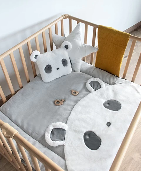 Découvrez ce tapis de chambre tout doux. Un joli motif Panda est appliqué sur le tapis et ses petites oreilles sont en relief. Très rigolo et très tendance !