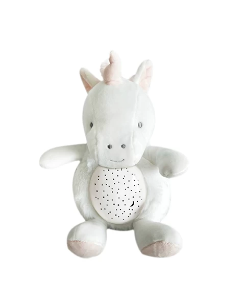 La veilleuse musicale et lumineuse peluche Licorne apaisera bébé lors du coucher avec sa douce lumière, sa texture et sa musique. A la fois veilleuse multicolore à projections murales et boîte à musique, ses mélodies et ses variations de couleurs apaisantes accompagneront bébé au pays des rêves dès la naissance.